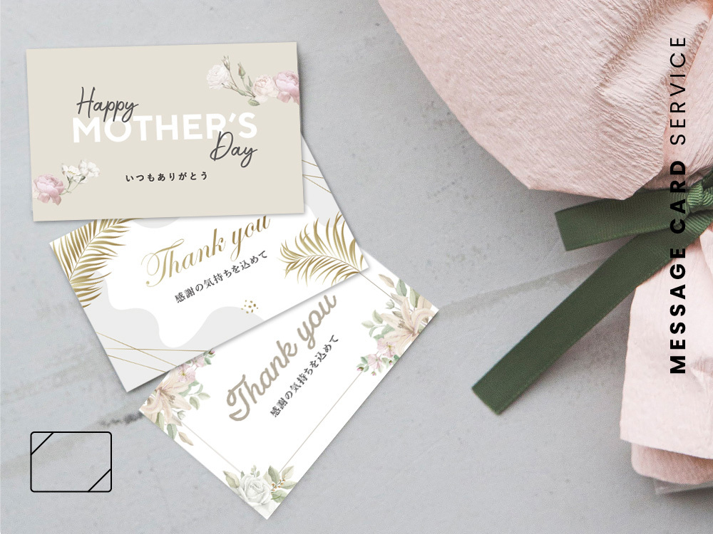 デザインを多数用意しておりますので、シーンに合わせてメッセージカードをお選びいただけます。